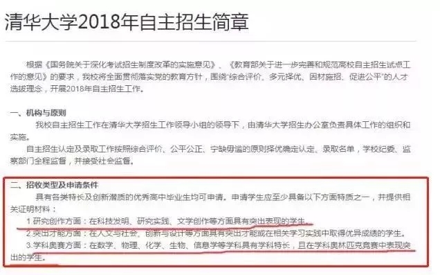 2018年清華大學自主招生簡章