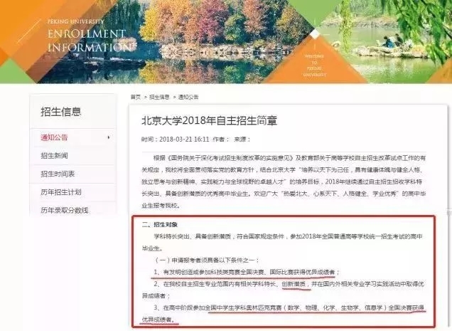 2018年北京大學自主招生簡章